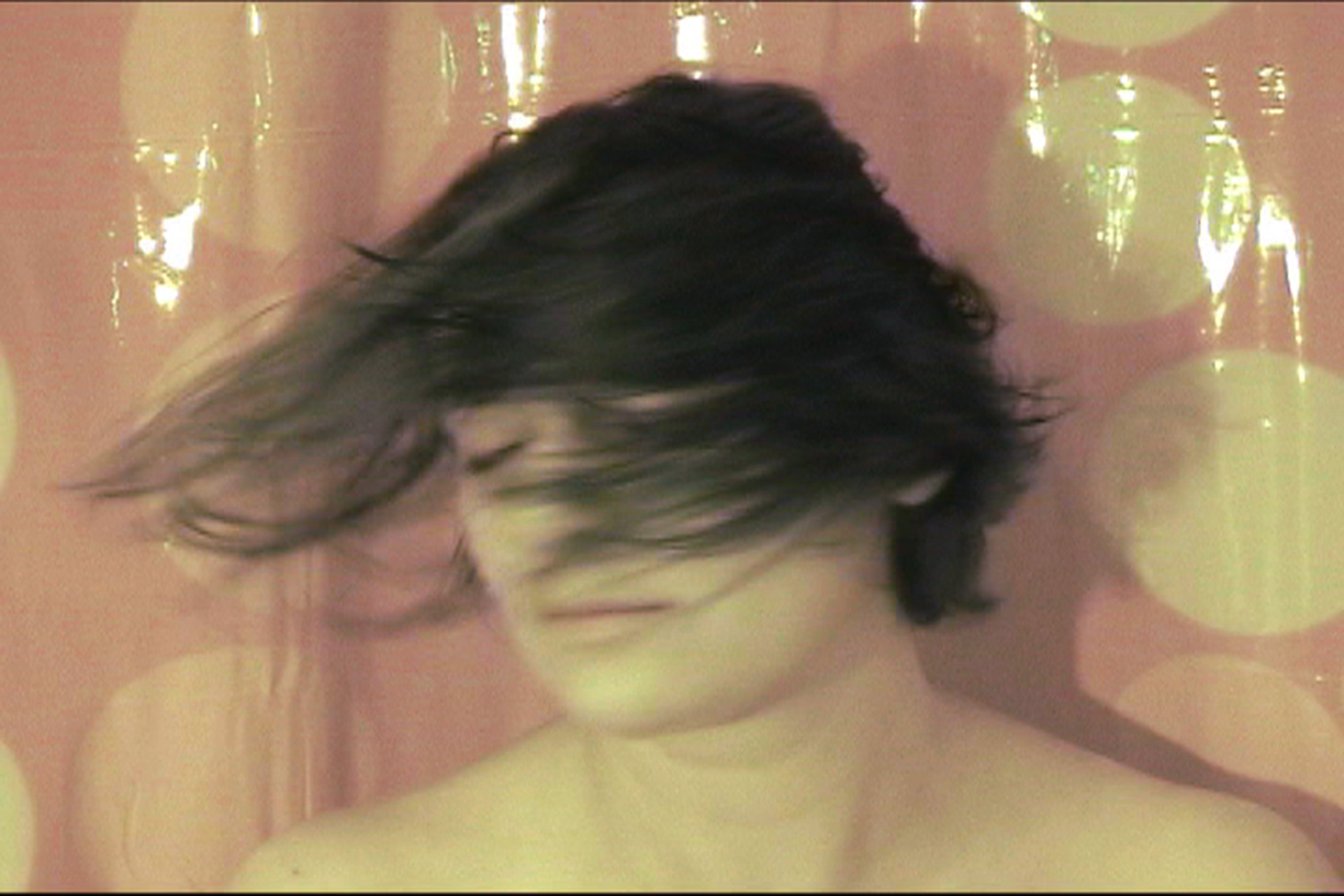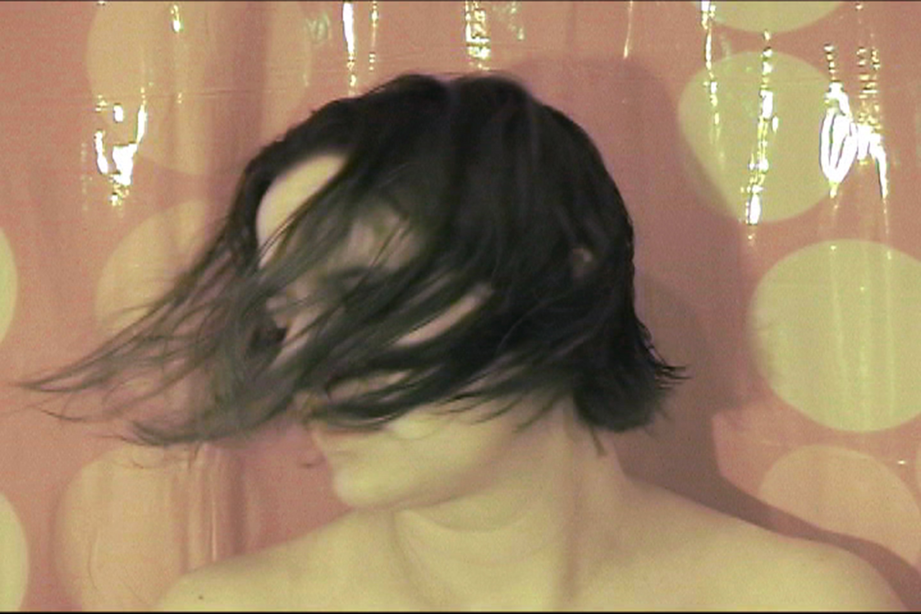 En “Pájaros en la cabeza” muevo frenéticamente mi cabeza de un lado al otro, a manera de trance o impasse hipnótico. El movimiento implica una acción performática, cuyo sentido es el de trazar juegos sinecdóticos en los que el signo sustituye al objeto, deviniendo así en propuesta artística. Recurro únicamente al cuerpo, mostrando mi rostro en primer plano si otro elemento más que el sonido generado por mi cabello húmedo que golpea la cortina de baño.
