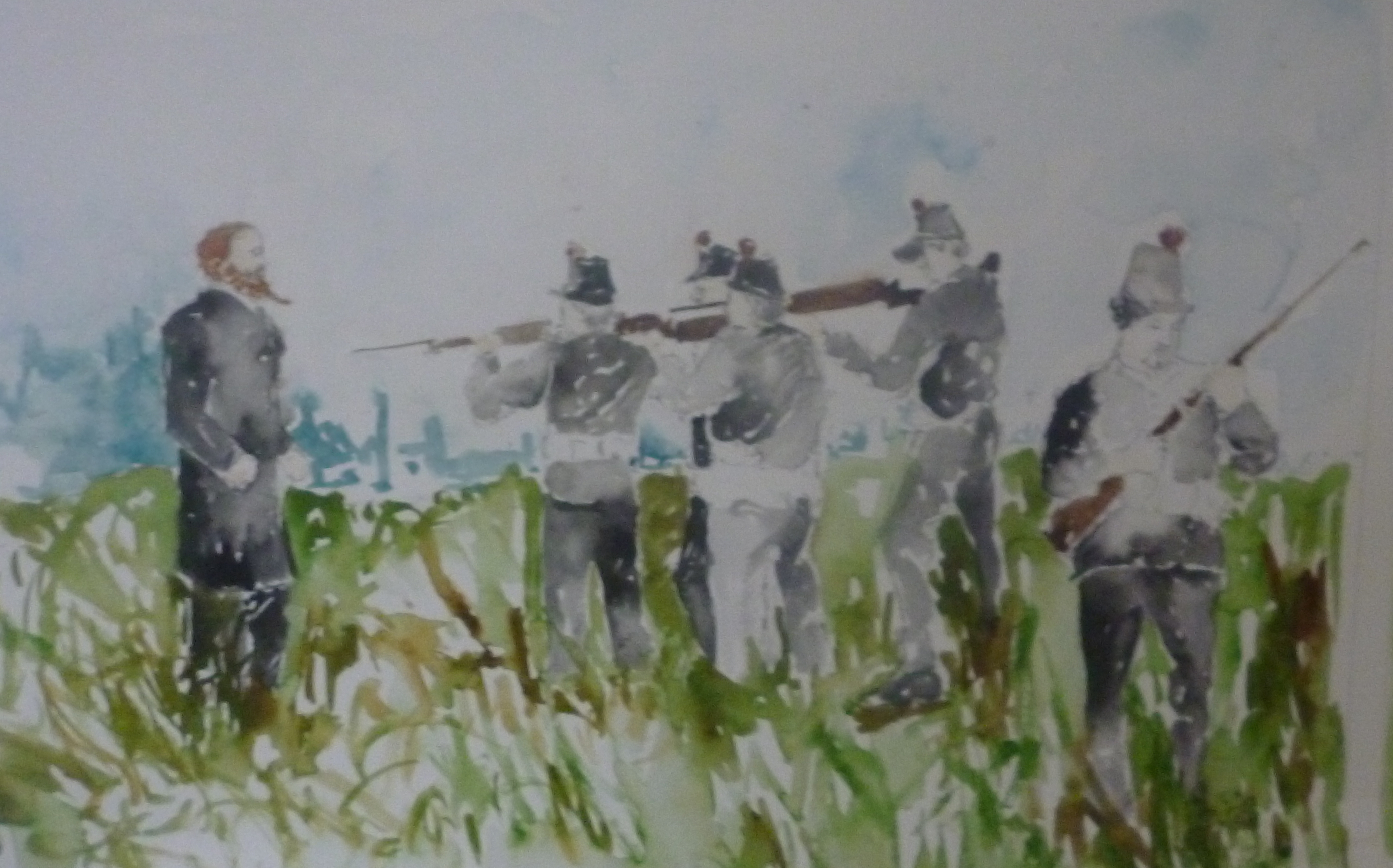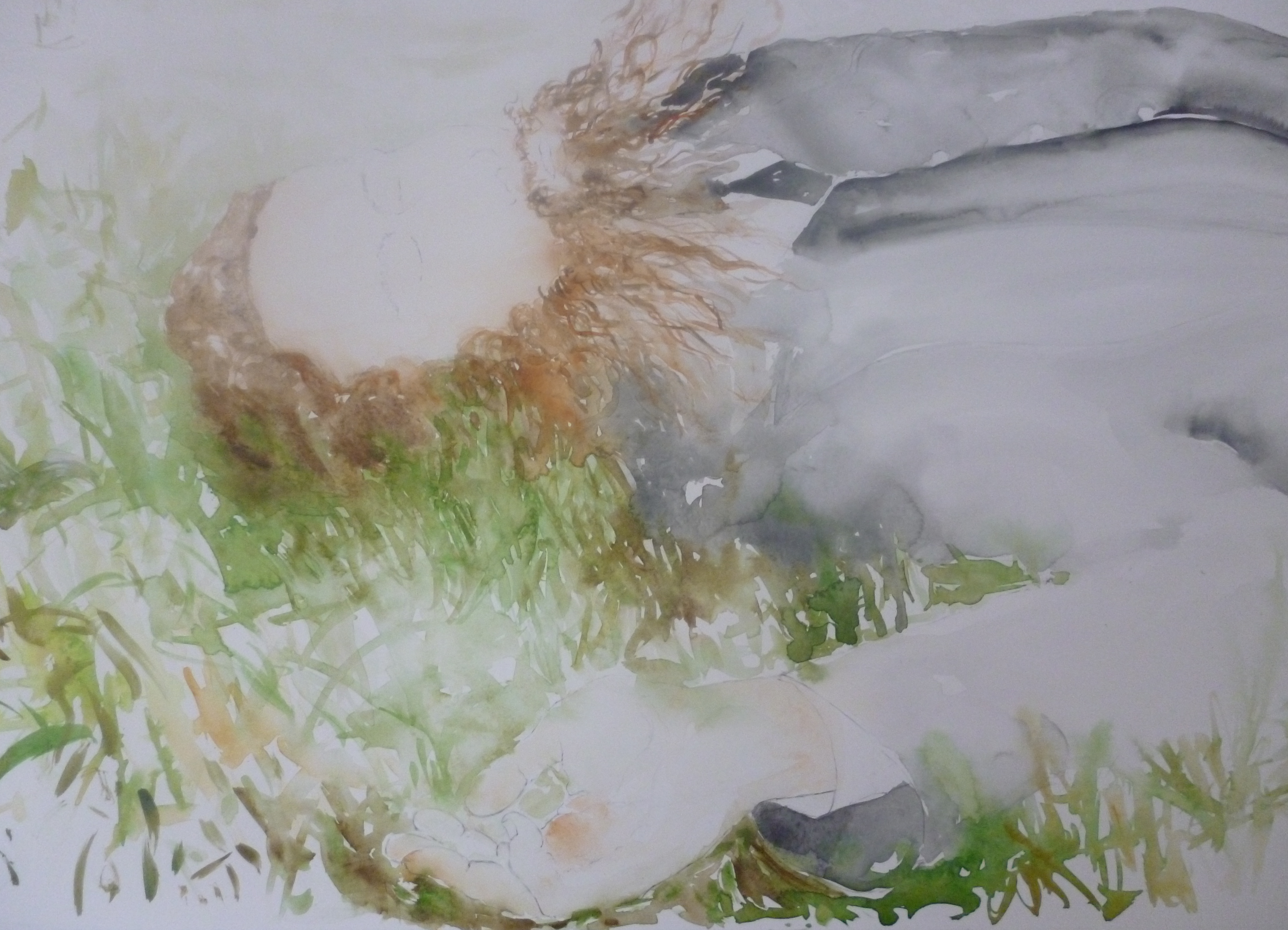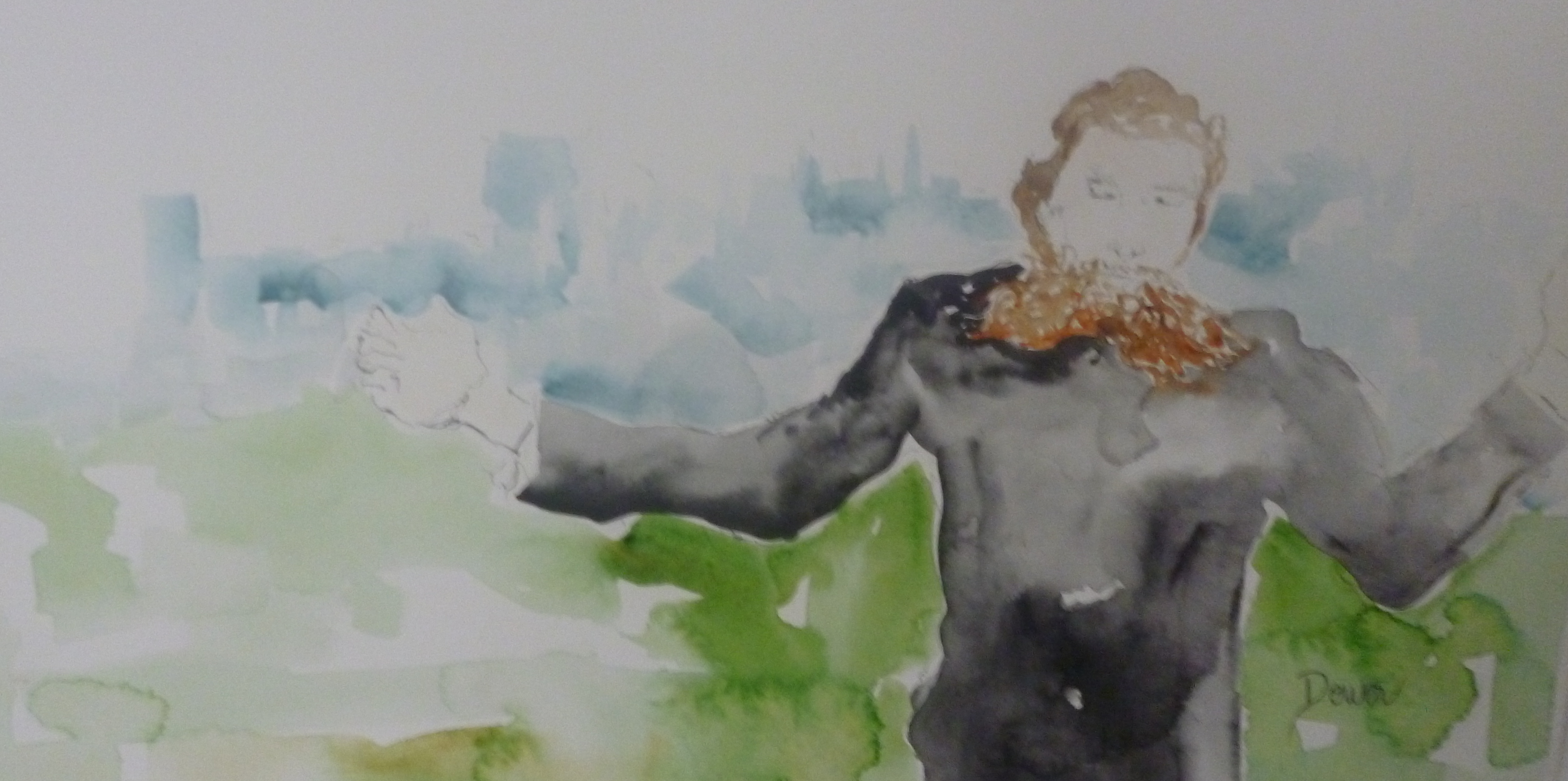 Maximiliano soñando su propia muerte, acuarela sobre papel, 230x120cm, 2012.