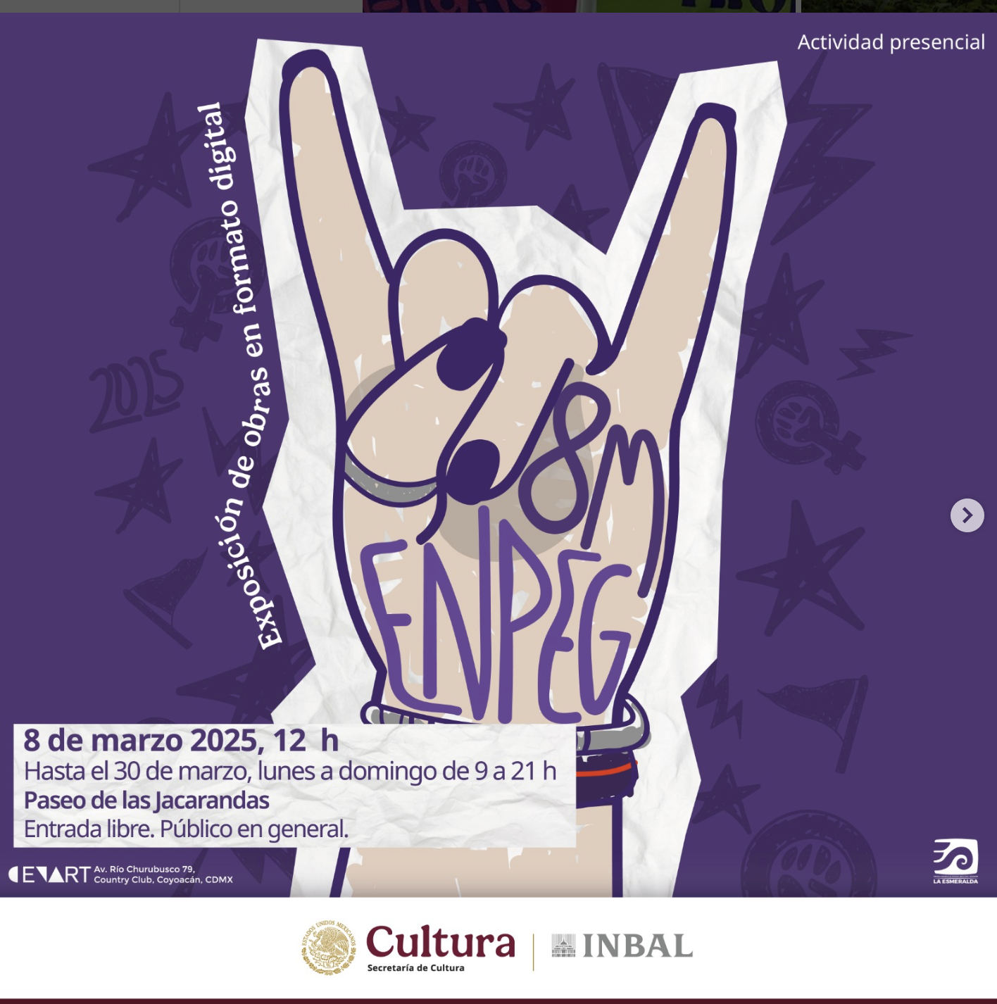 8M, Exposición de obras de las Maestras de La Esmeralda en formato digital, Paseo de las jacarandas, Centro Nacional de las Artes, 2024.