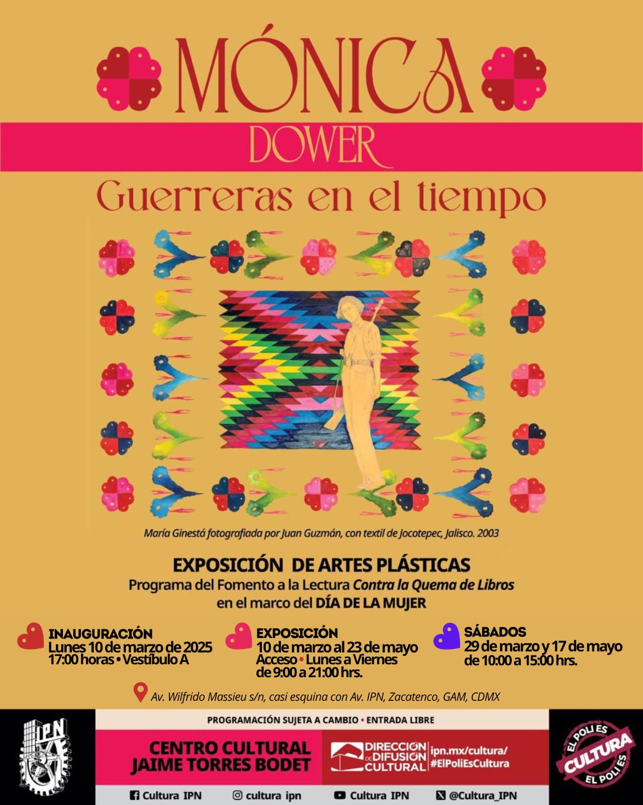 Mujeres entretejidas, Guerreras en el Tiempo, Politécnico Nacional, Centro Cultural Jaime Torres Bodet, textos de Dina Comisarenco y de Miriam Kaiser, marzo 2025.