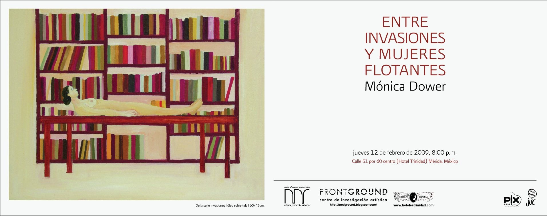 Entre Invasiones y mujeres flotantes, Galería y Centro de Investigación Artística de Arte Contemporáneo, Frontground – Manolo Rivero, Mérida, Yucatán, 2009.