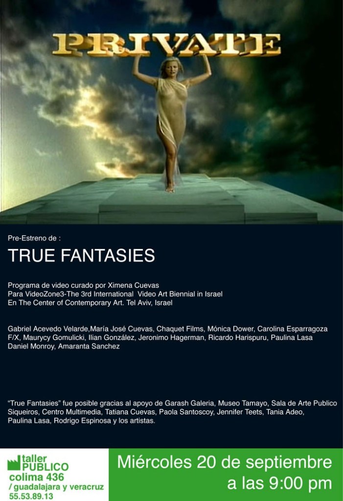 True Fantasies, curator, Ximena Cuevas, Center for Contemporary Art, Telaviv, Israel, 2006