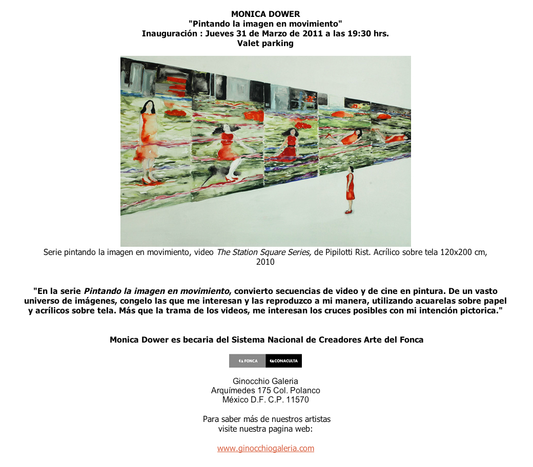 Pintando la imagen-movimiento, curaduría Bárbara Perea, Galería Ginocchio, 2011.