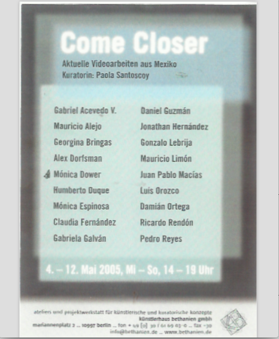 Come Closer, Aktuelle Videoarbeiten aus México, curator, Paola Santoscoy, Kunstlerhaus Bethanien, Berlín 2005.