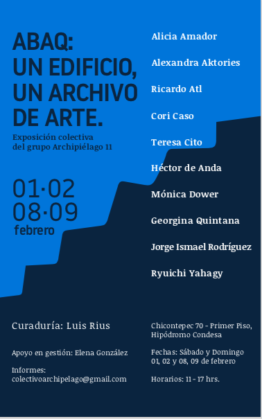 ABAQ: Un Edificio un Archivo de Arte, exposición colectiva del grupo Archipiélago, curaduría Luis Rius Caso, 11, Chicontepec 70, Ciudad de México, 2020.